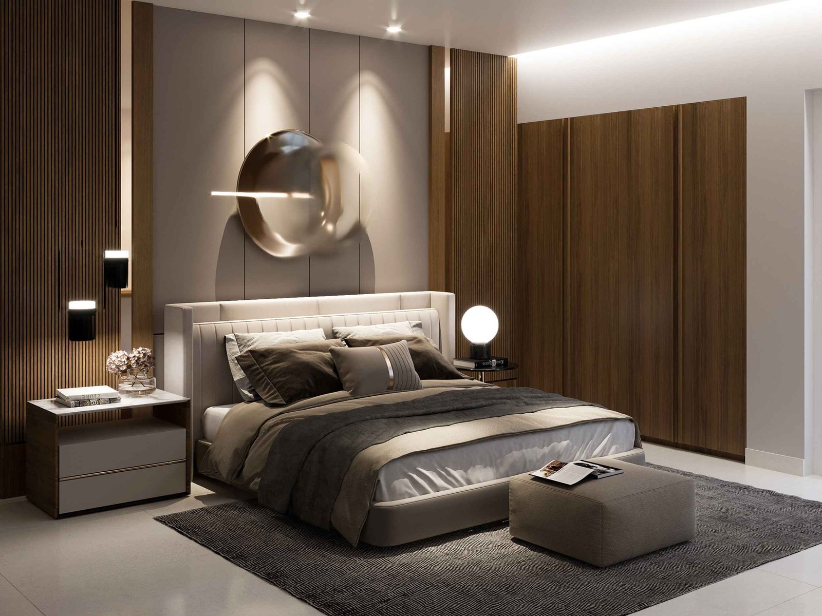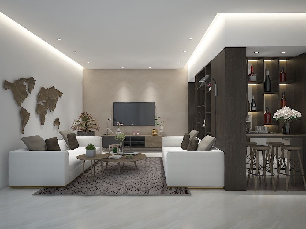 premium material selections, ergonomic furniture arrangements, ambient lighting, and cohesive décor
